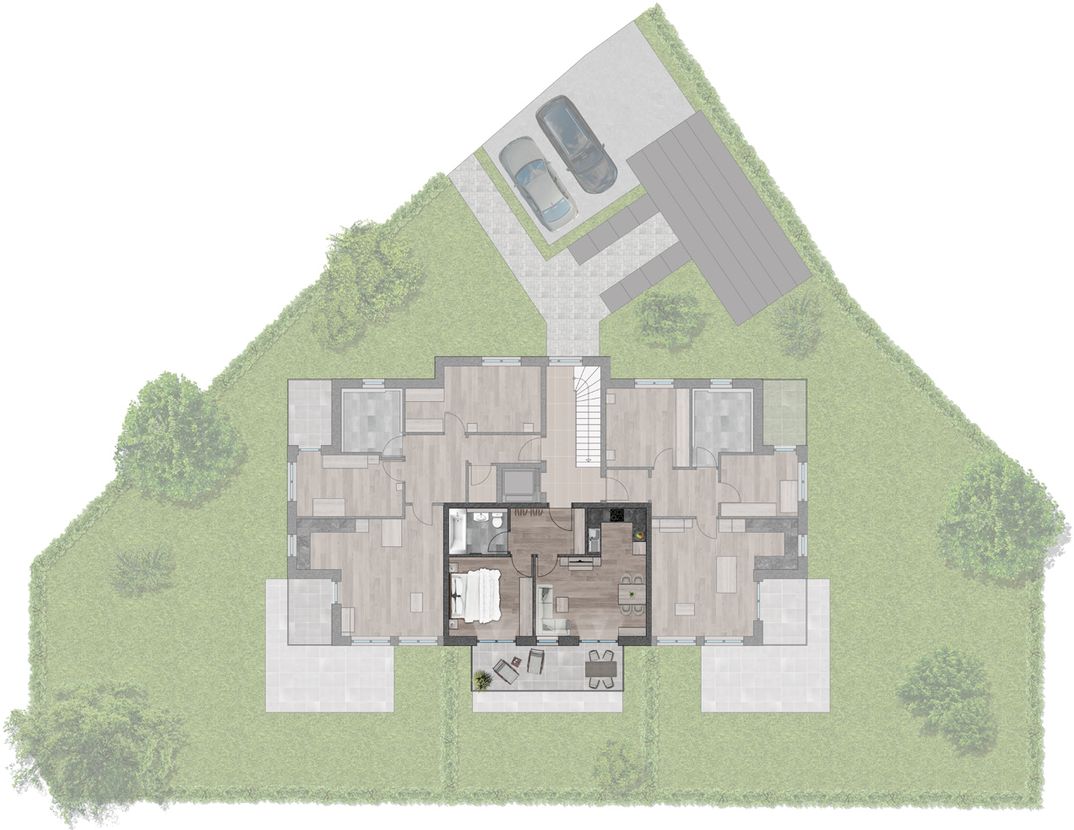 Sonnenterrassen in Verbindung mit exklusiven Garten-Sondernutzungsflächen.