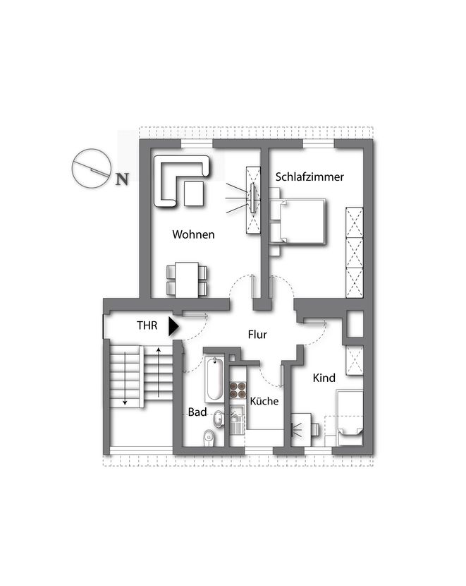 Die Wohnung überzeugt mit einem durchdachten Grundriss sowie einem dazugehörigen Gartenanteil.