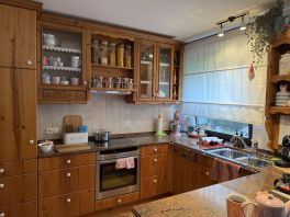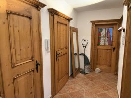 Die im urigen Voglauer-Stil gehaltene Holzvertäfelung verleiht der Wohnung einen charmanten, warmen Charakter und bietet gleichzeitig viel praktische Staufläche.
