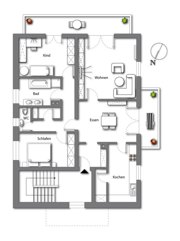Diese ruhig und zugleich stadtnah gelegene 3,5-Zimmer-Wohnung in Bad Reichenhall überzeugt durch einen großzügigen, durchdachten Grundriss und zwei Balkone.