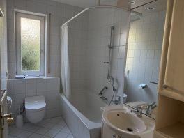 Dazu ein helles Badezimmer mit Fenster, ausgestattet mit Badewanne,