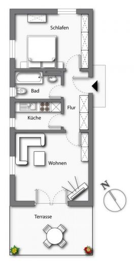 Zusätzliche Staufläche für Dinge des nichtalltäglichen Bedarfs finden Sie im zur Wohnung gehörenden Kellerraum.