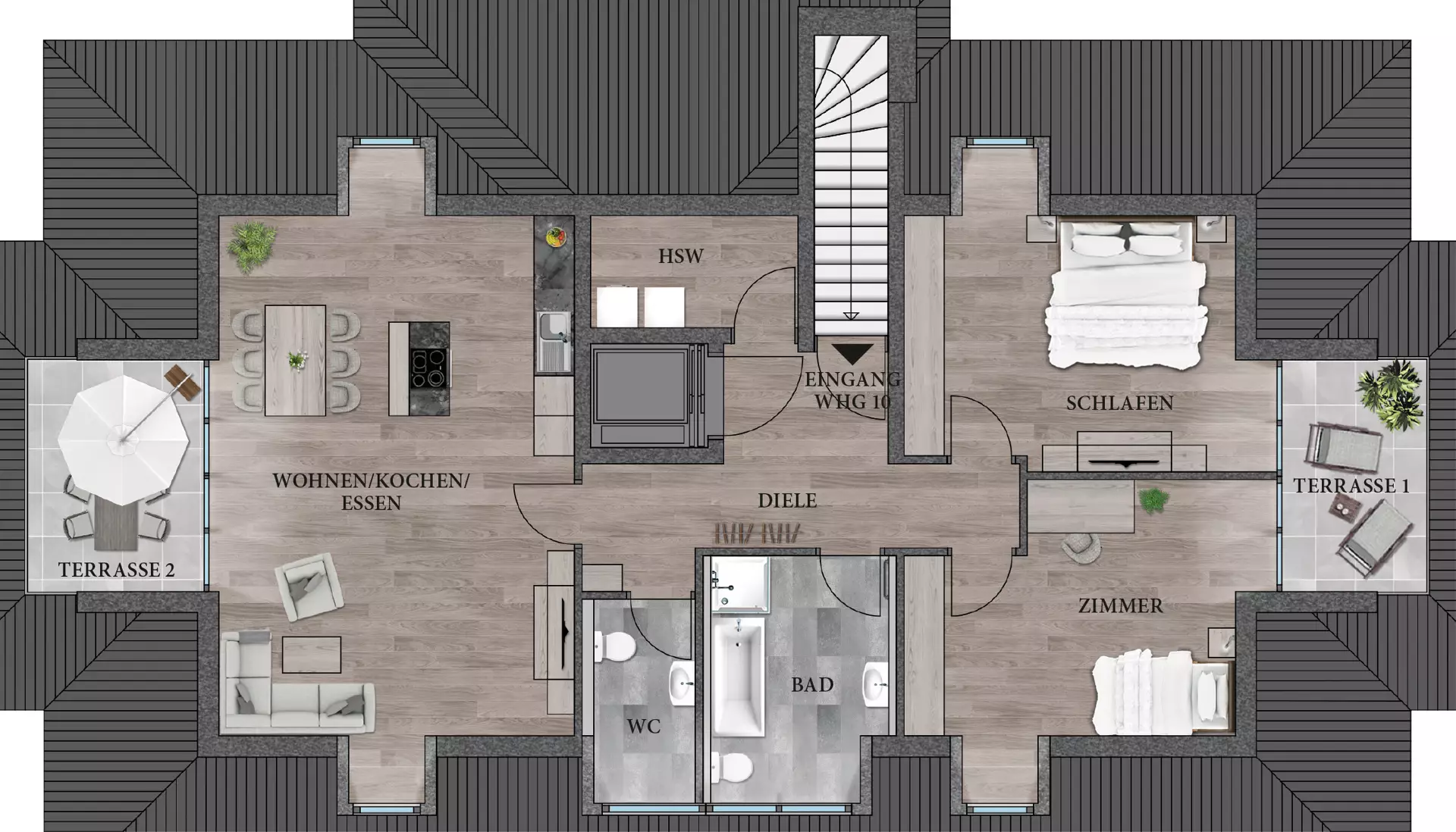 Exklusive 3-Zimmer-Dachterrassenwohnung mit 2 Balkonen (Kauf)